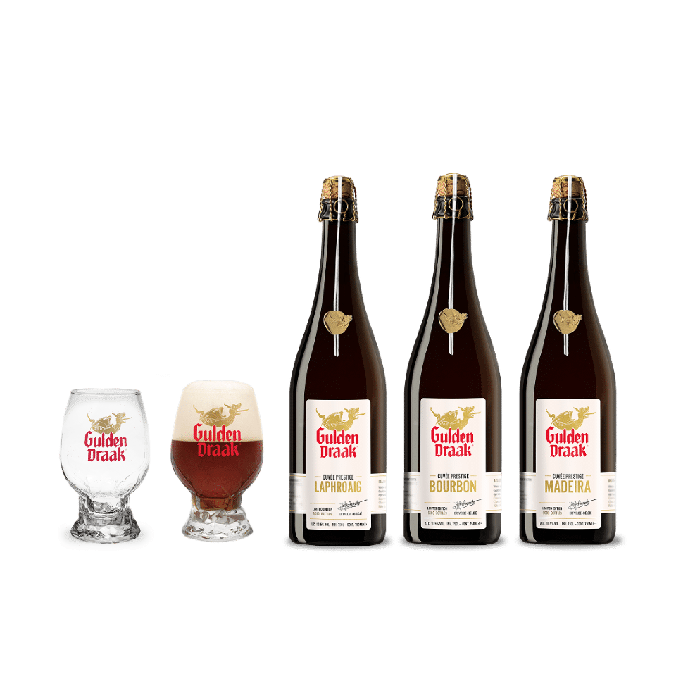 Includes three 75cl bottles and two Gulden Draak glasses (25cl) for an optimal tasting experience.
