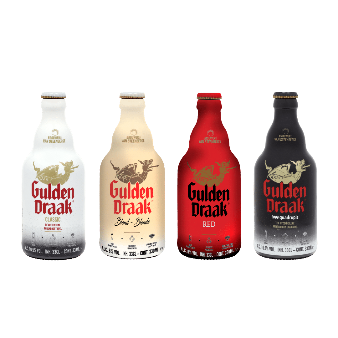 Met dit Gulden Draak pakket ontdek je vier iconische bieren: Classic, Blond, Red en 9000 Quadruple. Van de robijnbruine volheid van Classic, het volmondige karakter van Blond, de fruitige toetsen van Red tot het bijzonder rijk en complexe smaakpalet van de 9000 Quadruple. Elk glas vertelt een ander verhaal.